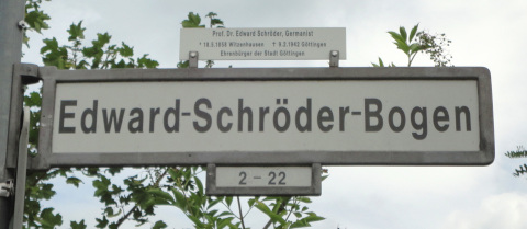 Im Norden Göttingens, in Weende, zweigt vom Max-Born-Ring eine kleine Straße ab, die den Namen »Edward-Schröder-Bogen« trägt. Der Namensgeber, Edward Schröder (1858–1942), forschte und lehrte als ordentlicher Professor für deutsche Sprache und Literatur von 1902 bis zu seiner Emeritierung 1926 an der Georg-August-Universität Göttingen. Zweifellos kann er als einflussreicher, historisch bedeutender Vertreter der Germanistik in der ersten Hälfte des 20. Jahrhunderts gelten.1Unter anderem gab Schröder von 1890 bis 1938 die Zeitschrift für Deutsches Altertum (mit) heraus; 1907/08 fungierte er als Prorektor der Universität Göttingen; er war Mitglied der Akademien Göttingens (1894/1903), Preußens (1912) und Wiens (1916); Schröder publizierte hunderte wissenschaftliche Schriften zu diversen Aspekten der deutschen Sprache und Literatur und gab Teile des Deutschen Wörterbuchs heraus. Vgl. zu Schröders Biographie Ruprecht, Dorothea: Schröder, Edward. In: König, Christoph (Hg.): Internationales Germanistenlexikon 1800–1950, Bd. 3. Berlin/New York 2003, S. 1660–1663. Vgl. als Bibliographie der Schröderschen Werke bis 1933: Bibliographie Edward Schröder zum 75. Geburtstage am 18. Mai 1933. Berlin 1933. Die Forschung zu Schröder ist spärlich. Arbeiten zu seinem Agieren im Ersten Weltkrieg existieren noch nicht. 1937 wurde Schröder die Ehrenbürgerwürde der Stadt Göttingen verliehen, die ihm bis heute zukommt.2Näheres zu den Umständen der Straßenbenennung sowie der Verleihung der Ehrenbürgerwürde dürfte sich im Göttinger Stadtarchiv in Erfahrung bringen lassen. Da das Stadtarchiv jedoch während der Arbeit an diesem Text dauerhaft geschlossen hatte, waren dortige Recherchen bedauernswerterweise nicht möglich. In Göttingen lebte Schröder bis zu seinem Tod 1942; an einem Haus in der Wagnerstraße, welches er von 1902 bis 1912 bewohnte, erinnert heute eine Gedenktafel an ihn.