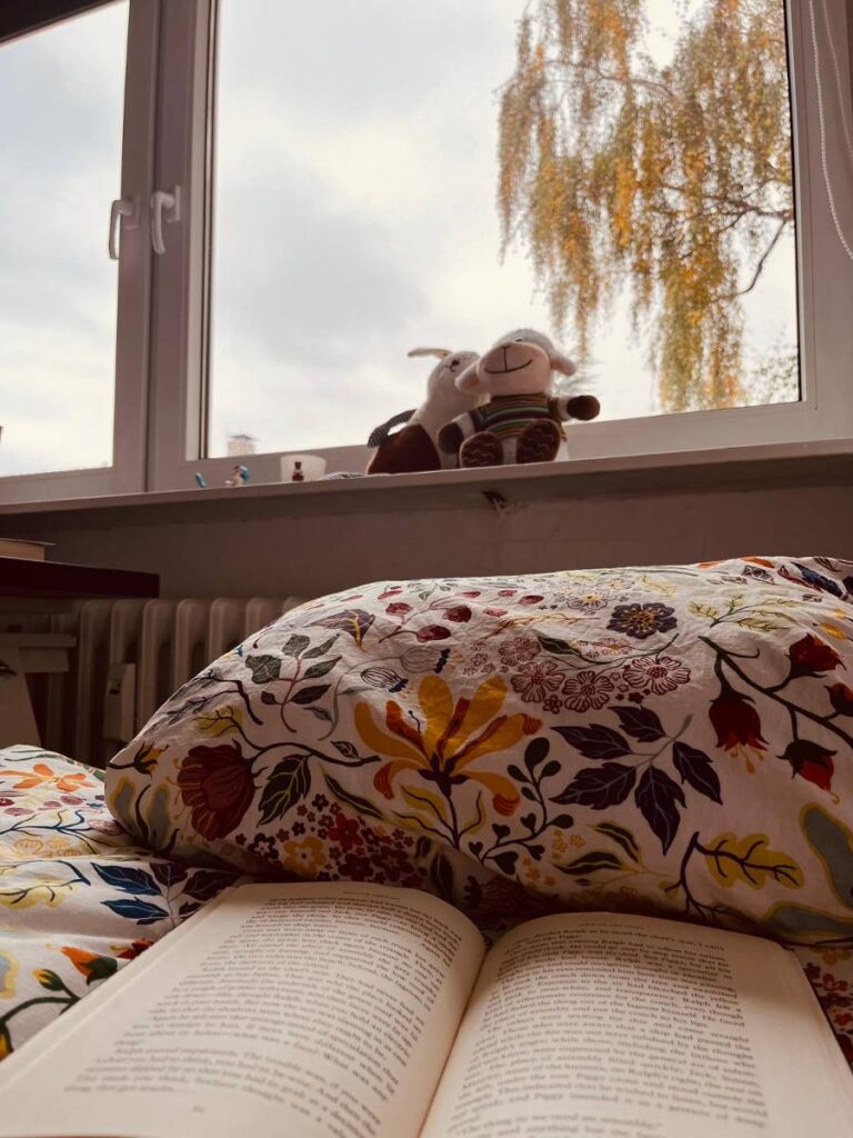 The bed may be a convenient place to revitalize the habit of reading, but it is also a comfortable place. One does not have to read just before sleeping or after waking up but can also do so during the day. Especially during winter months in Germany, the bed’s warm and cozy atmosphere along with soft and yellow lighting turn reading into an event to look forward to. I prefer to put up some music, but one can light a candle or listen to the birds chirping by their window—all while picking up a book and leaving the world’s daily stress out while getting lost in the story. The peace and quiet the bed offers cannot easily be rivaled but of course, there is not just one place to read, and each must look for their most comfortable spot on their own.
