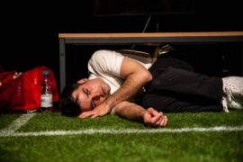 Für einige Zuschauer*innen mal wieder zu verwirrend. Aus den zwei freien Plätzen neben mir wurden acht. Auch im zweiten Teil der Inszenierung musste man sich die Verknüpfungen der einzelnen Szenen hart erarbeiten und die Ereignisse überschlugen sich: Da waren ein Deserteur, eine Leiche, ein Selbstmörder und ein Feuer. Die Situation geriet aus den Fugen, doch wie alles so recht zusammenpasste, blieb offen. Vollends verwirrt war man am Ende des Abends, als das Feuer nicht nur durch die Nebelmaschinen entstand, sondern tatsächlich der Vorhang zu qualmen anfing. Ein Schauspieler begutachtete den Schaden, ging von der Bühne, etwas Getuschel bekam man dank Mikro mit, dann kehrte er zurück und nahm wieder seinen ursprünglichen Platz ein. Und schließlich zeigte ein anderer in Richtung des Vorhangs, schrie: Feuer! und das Licht ging aus.